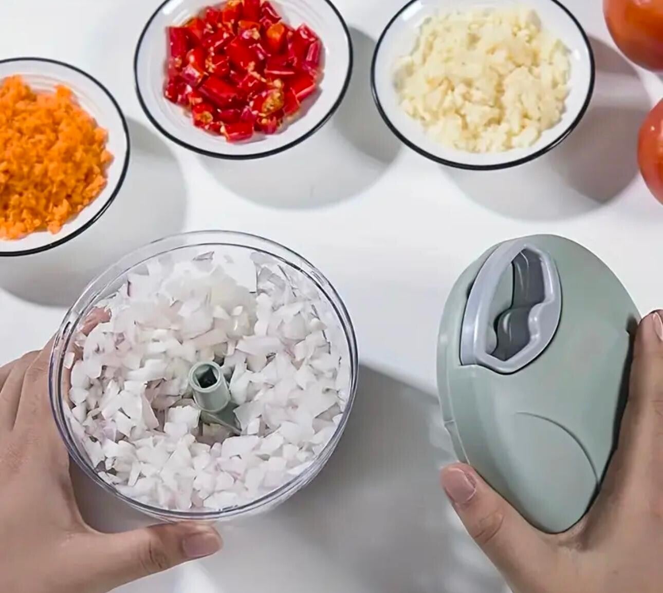 Manuelle Küchen-Zerkleinerer mit Zugmechanismus – Schneidet, Hackt & Zerkleinert in Sekunden!